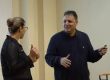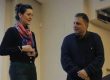 כנראה בגלל הגובה – הוא מסתכל על המראיינת פיזית מלמעלה,